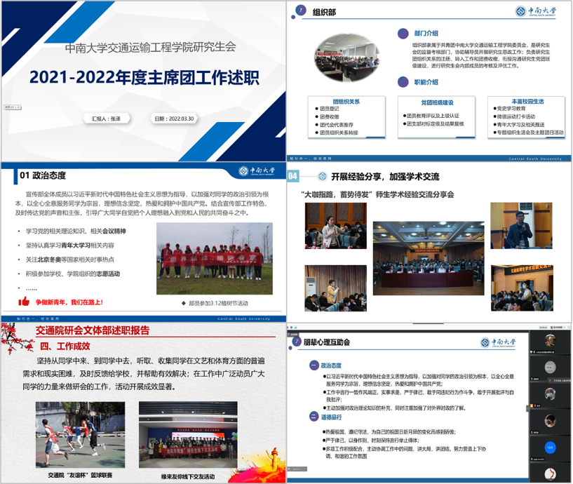 3月30日下午2点30分,交通院分团委、员工会及研究生会述职评议会以线上腾讯会议的形式召开。本次会议由员工会主席罗阿彤主持,公司分团委书记任琭老师,分团委副书记张健老师、郑繁简老师,分团委、员工会、研究生会...