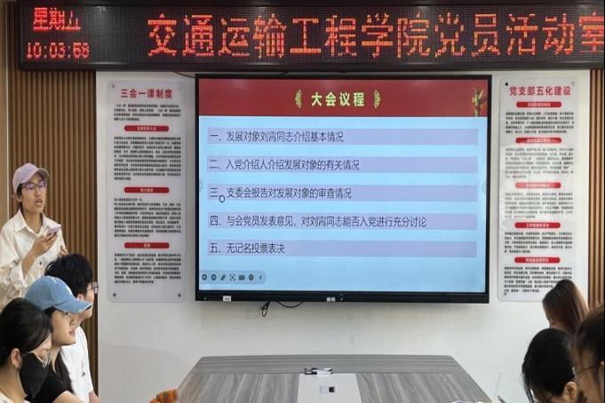 6月6日上午,研究生第六党支部预备党员接收大会暨专题党课活动在综合实验楼530教室召开,会议由支部书记陈灏主持。支部应到会正式党员33人,实到会党员31人。