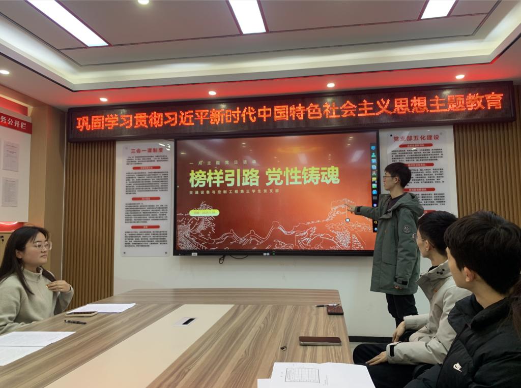 1月10日下午,交通设备与控制工程第三员工党支部于党建活动室开展“榜样引路,党性铸魂”主题党日活动。活动旨在通过观看时代楷模杨士莪的先进事迹,培养大家的爱国、报国之情,激发大家努力学习科学技术、为祖国建设奉献力量的决心。