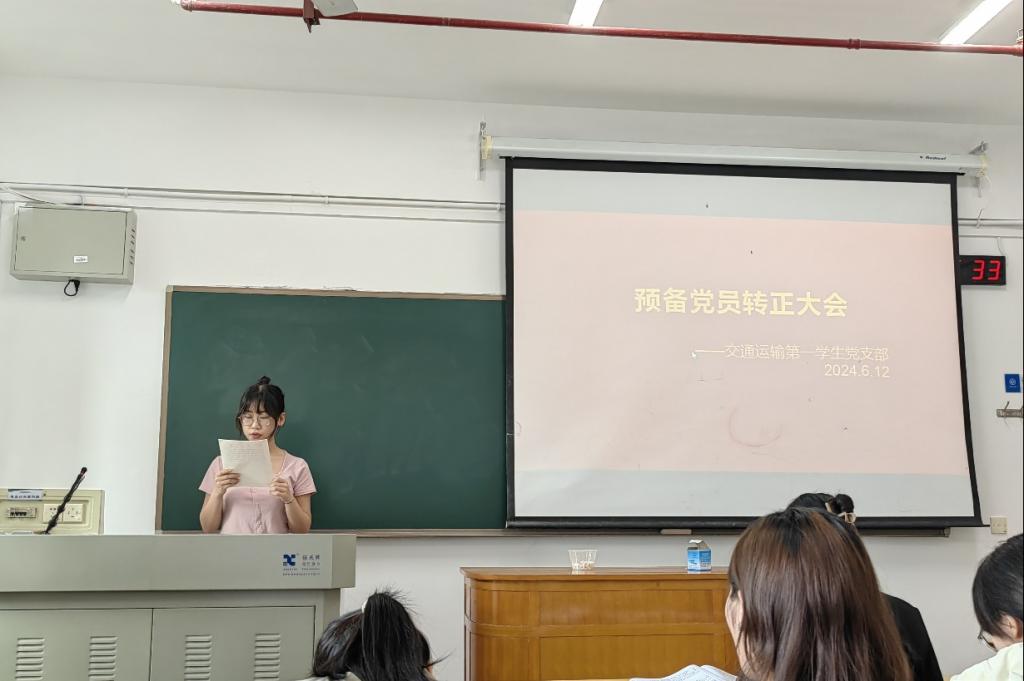 6月12日下午15:00,交通运输第一员工党支部在世纪楼306室举行预备党员转正大会暨预备党员接收大会,会议由支部书记石晓琪同志主持,支部全体党员参加会议。