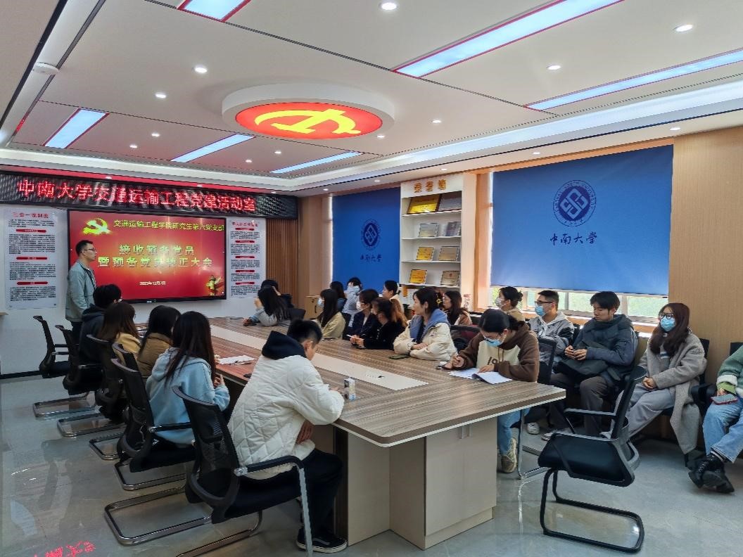 12月7日,研究生第六党支部于第一综合教学楼530室举行接收预备党员暨预备党员转正大会,讨论接收谢霞菲为预备党员及王文婕同志的转正事宜,会议由支部书记周少宇主持。