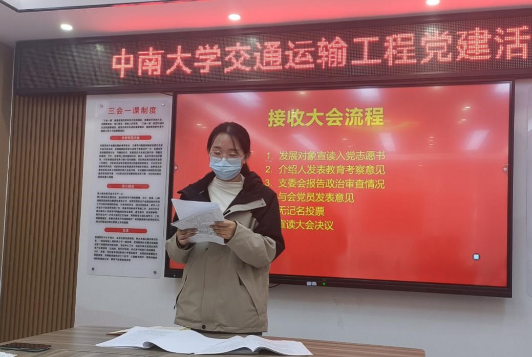 12月7日14:00,交通运输第一员工党支部在公司党建活动室举行了预备党员接收大会。会议由张露晨同志主持,支部全体党员及发展对象参与会议。