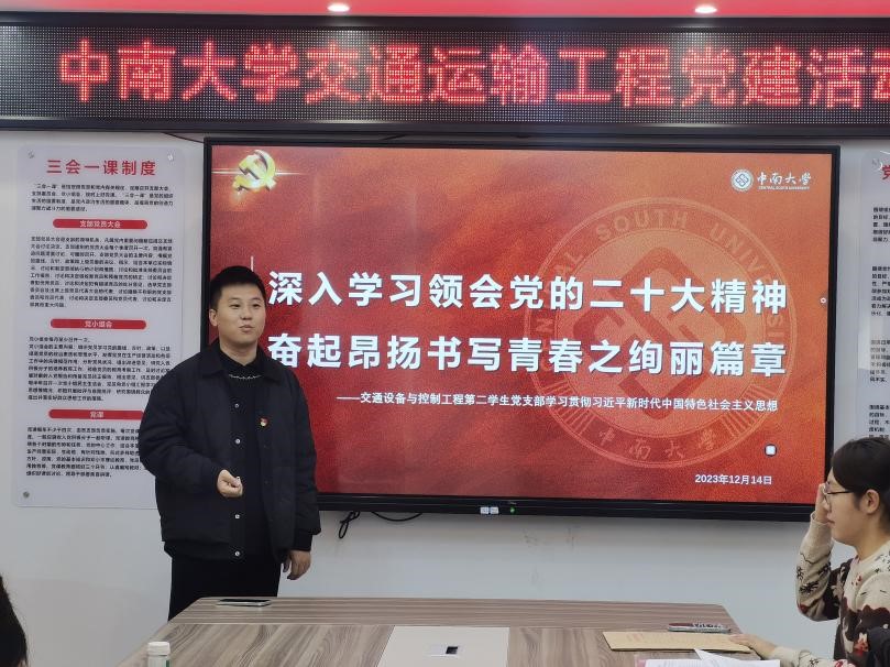 大会伊始,支部书记张健老师以“深入学习领会党的二十大精神,奋起昂扬书写青春之绚丽篇章”为主题向同志们讲授党课,详细讲解了党章的新修改彰显的中国共产党准确判断和把握历史新方位的能力,深入浅出地解读了党对青年工作的重视,加深了党员同志们对党员身份的认同感和责任感。