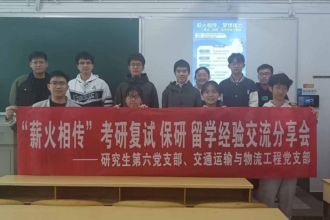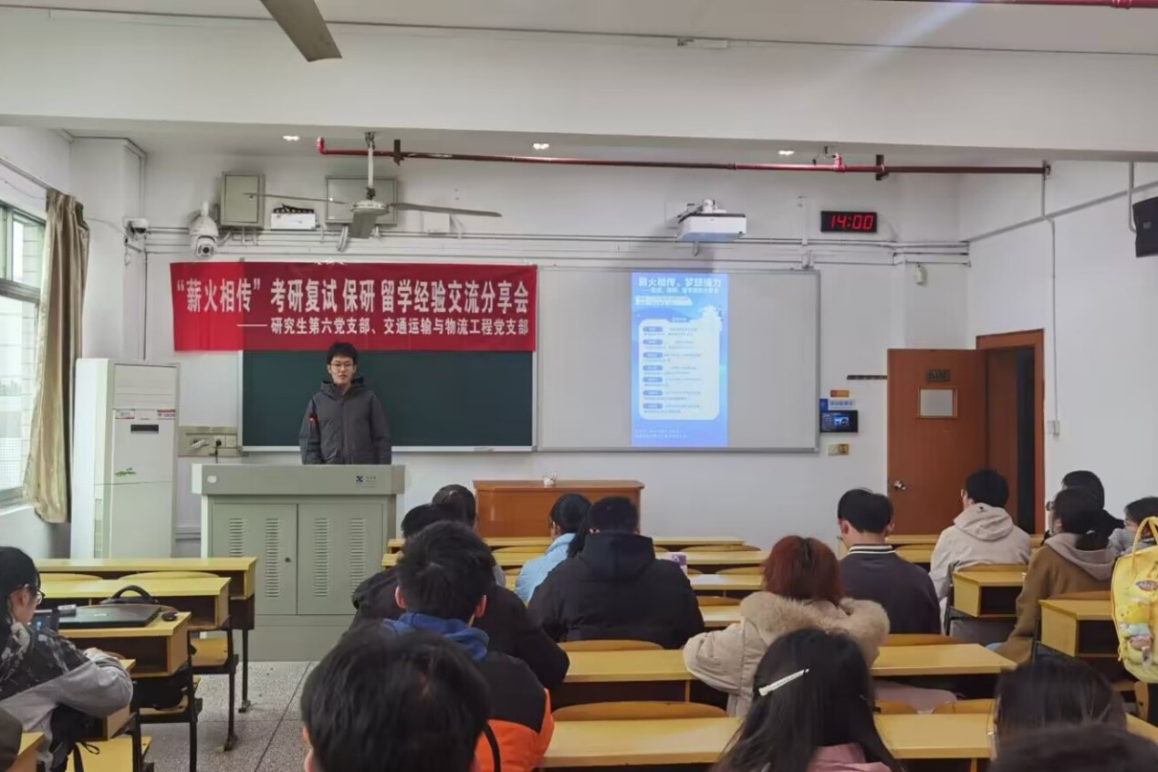 3月9日14:00,由交通运输与物流工程员工党支部与研究生第六党支部联合开展的“薪火相传·梦想接力”考研复试、保研、留学经验交流分享会于世主401教室举行,分享会吸引了公司50余名同学参与。