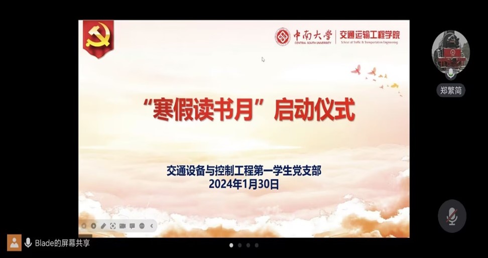 1月30日晚,交通设备与控制工程第一员工党支部于线上举行“寒假读书月”启动仪式。本次仪式由关剑祺同志主持,支部全体党员同志参加会议。