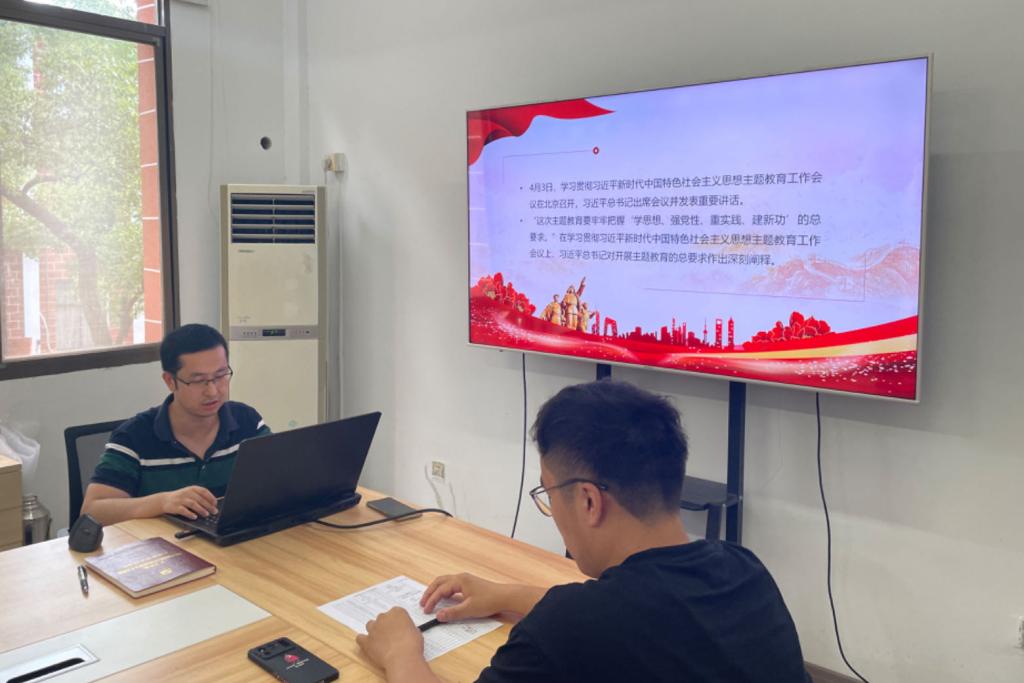 首先,同志们对支部新加入的党员同志表示欢迎,四位新生党员分别进行自我介绍,并表示会积极迎接新学期的工作和科研学习任务,在生活中发挥党员的先锋模范作用,与支部共同进步。接着,支部书记阳程星同志带领支部同志进行习近平新时代中国特色社会主义思想主题教育的学习,从学思想、强党性、重实践、建新功四个方面阐释了此次主题教育的具体要求和深刻内涵。他指出,各位党员同志应牢记主题教育的总要求,学习理论、掌握本领,增强党性、坚守本心,注重实践、外化于行,履职履责、勇毅前行。