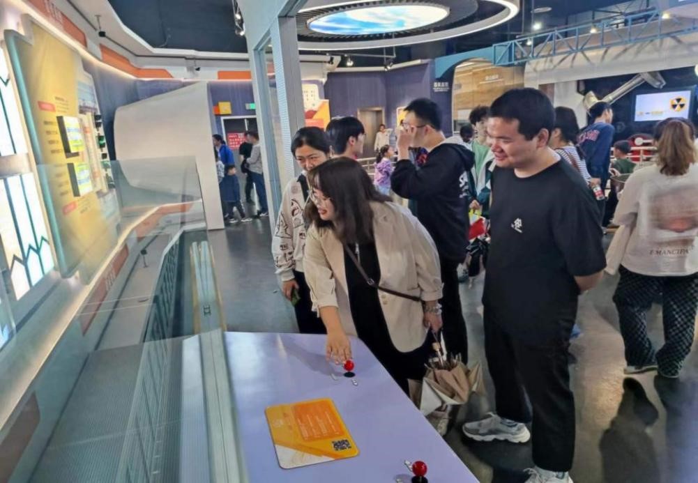 参观完轨道交通展厅,全体党员自由参观其他展厅。展厅涵盖能源、环保、太空、生命、数理等多个学科领域。面对一件件充满奥秘的展品,党员们满怀好奇心和求知欲,在互动中感受科学的魅力,在观摩和体验中提升科技素养。