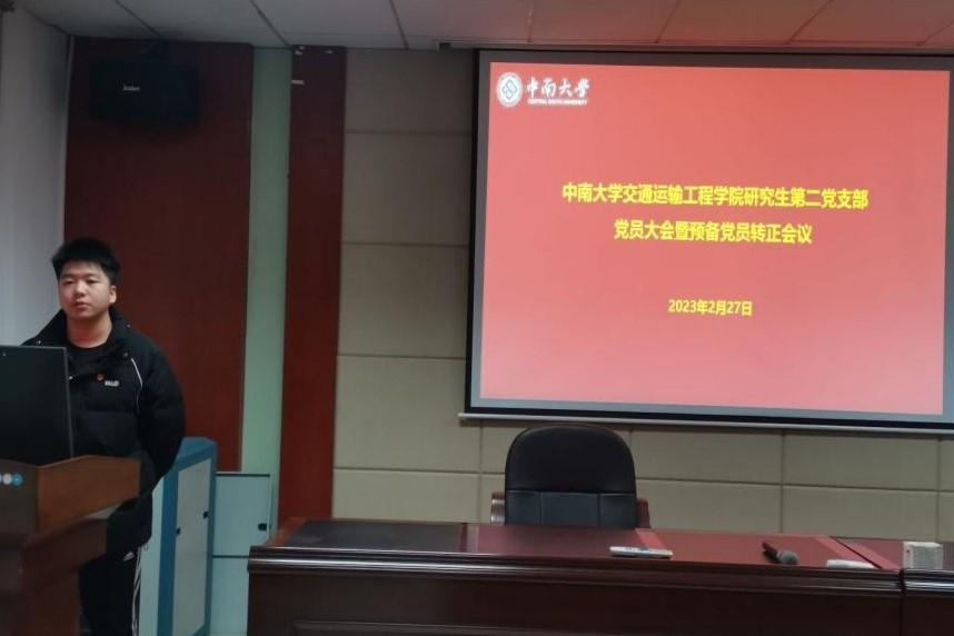 2月27日晚上19:00,交通院研究生第二党支部于交通楼513教室顺利举行全体党员大会暨预备党员会议。会议主要分为讨论张金宝、王梦婷、赵胜雯、杨展豪四位同志转正问题以及二十大精神学习分享两个环节。本次大会由组织委员蒋艾佳同志主持。