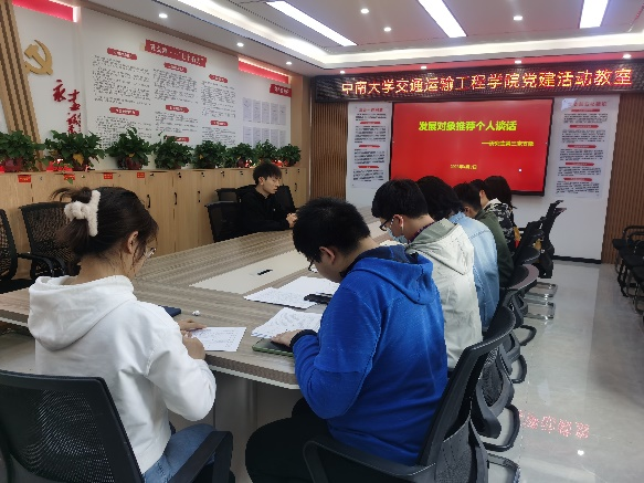 会议伊始,支部组织委员颜亚超同志就本次答辩会流程做详细介绍。随后,各发展对象候选人依次汇报个人情况,介绍了个人成为入党积极分子以来在学习科研、员工工作、社会实践及志愿服务多方位的积极表现,讲述了个人在入党道路上的全过程的思想转变,阐述了个人对党的认识与入党动机,表达了个人靠拢党组织的决心、加入党组织的愿景。陈述完毕后,由各位评选小组组员针对候选人的入党动机、理论知识与时事政治等展开提问并深入交流,对候选人的表现表示肯定并提出下一步改进方向。