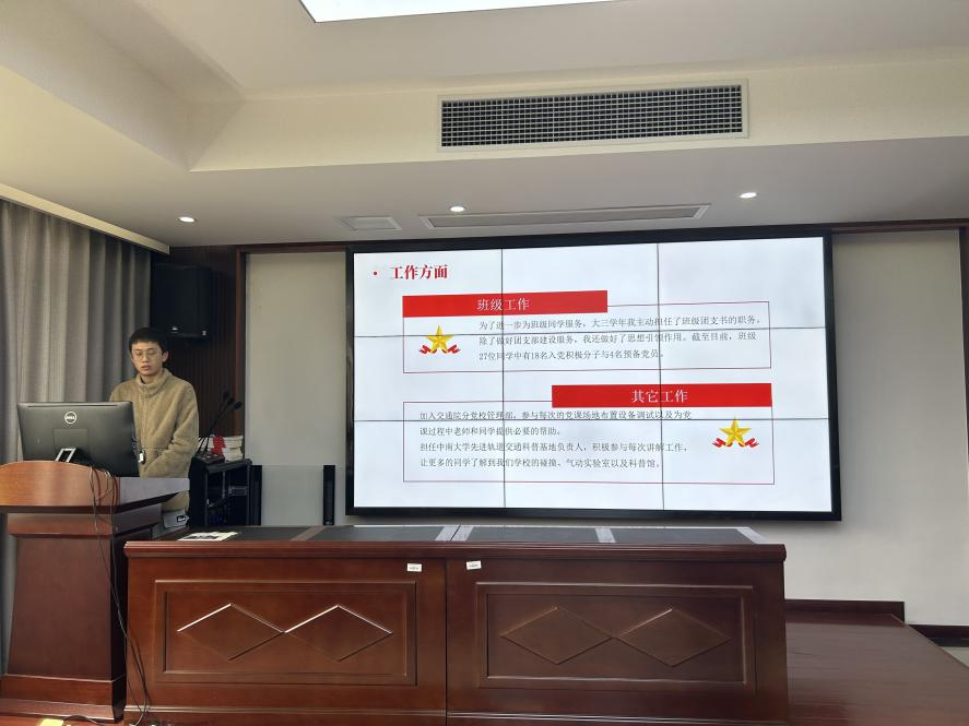 会议伊始,李瑞雨同志介绍了汇报的流程及相关事宜。随后,各发展对象候选人依次上台汇报,简单介绍自己进入大学以来在学习、员工工作、志愿服务等方面的情况,详细梳理了在入党道路上的思想转变历程,着重叙述了对党的认识和入党动机,同时反思了自身目前存在的不足并提出改进措施,表明了向党组织靠拢的决心。