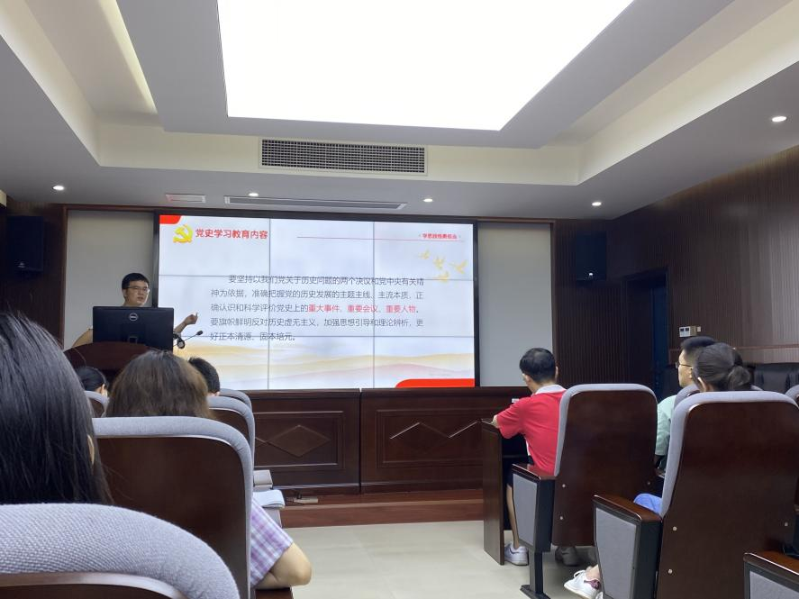 此次主题党课由曹超书记带领同志们以“学史崇德”为主题切点,通过党课讲解和进一步研讨交流以推进支部党史学习教育进程。曹书记强调了要坚持以党关于历史问题的两个决议和党中央有关精神为依据,准确把握党的历史发展的主题主线、主流本质,正确认识和科学评价党史上的重大事件、重要会议、重要人物。最后,曹书记向同志们提出了党史学习过程中的要求和期望。