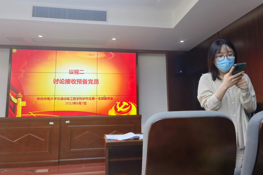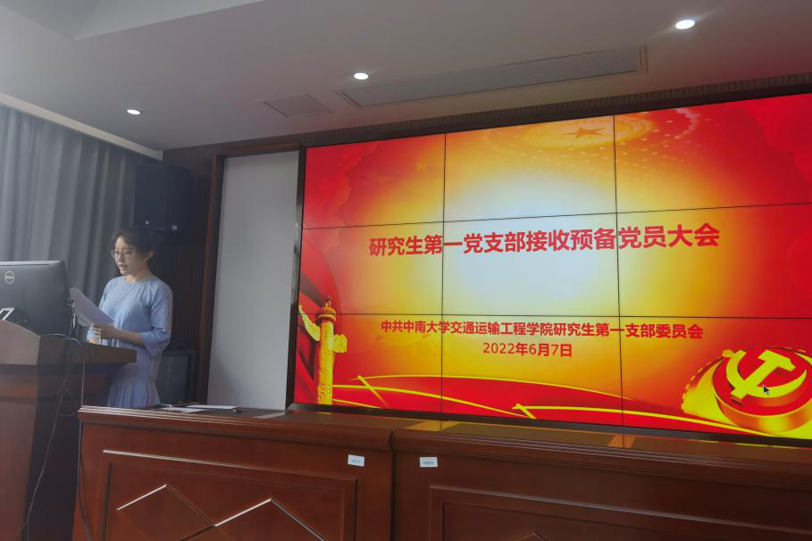 6月7日上午10:00,bv伟德国际研究生第一党支部接收预备党员大会在交通楼425顺利举行。会议由支部组织委员战映辰同志主持。
