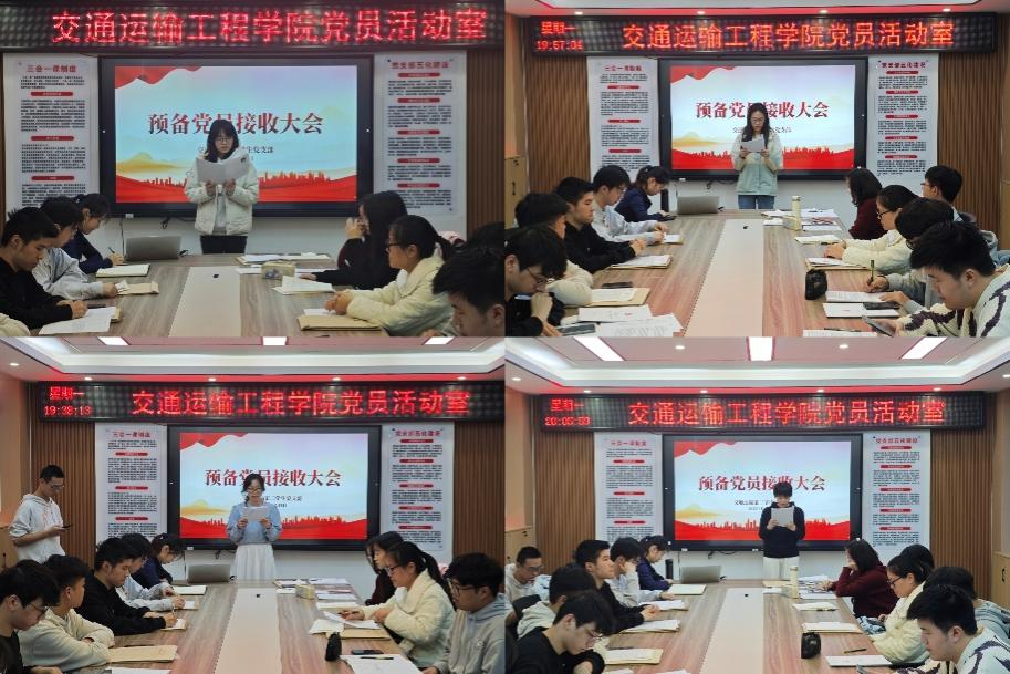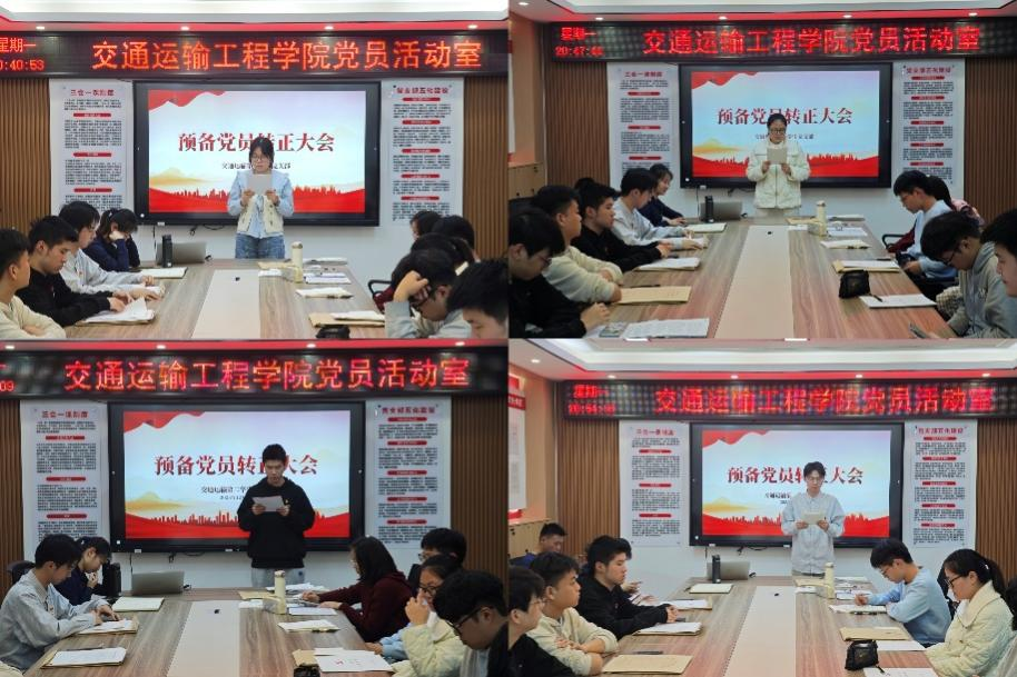 12月1日,交通运输第二员工党支部于第一综合教学楼530室举行接收预备党员暨预备党员转正大会,讨论接收陈喆等5位同志为预备党员和林逸宁等6位同志转正的相关事宜,会议由蒋昊轩及张浩睿主持。