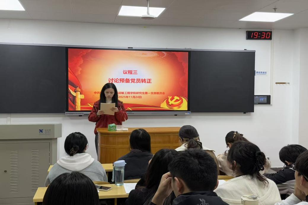 随后,支部大会讨论预备党员转正的相关事宜。韩胜梅、胡钰瑶同志上台宣读转正申请书,汇报了个人成为预备党员后在政治思想、学习生活、工作表现等方面的基本情况,并进行了自我总结和批评。韩胜梅、胡钰瑶同志发言结束后,组织委员罗汇祎同志代表支委会向支部大会报告征求党员和群众意见情况及支委会意见。经与会党员充分讨论并发表意见、正式党员无记名投票后,大会通过了韩胜梅、胡钰瑶同志的转正申请,支部副书记李朵同志宣读了表决决议。