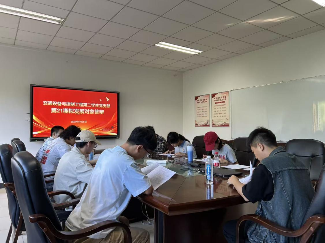 为进一步规范发展党员质量,切实把好党员队伍的“入口关”和“质量关”,2025年10月29日下午,交通设备与控制工程第二员工党支部在交通楼322召开第21期拟发展对象推荐答辩会。会议由郑苑同志主持,支部全体党员同志和14位拟发展对象参会。