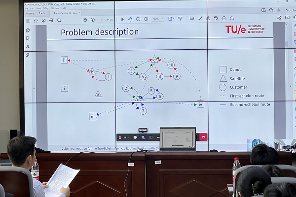 4月20日下午,埃因霍温理工大学Tom Van Woensel教授受邀,以线上会议形式为交通院师生开展了以“A Chance-Constrained Two-Echelon Vehicle Routing Problem with Stochastic Demands”为主题的学术报告。交通院部分教师、本科生和研究生在铁道校区交通楼425报告厅集中参加了本次讲座,讲座由物流工程系主任张得志老师主持。