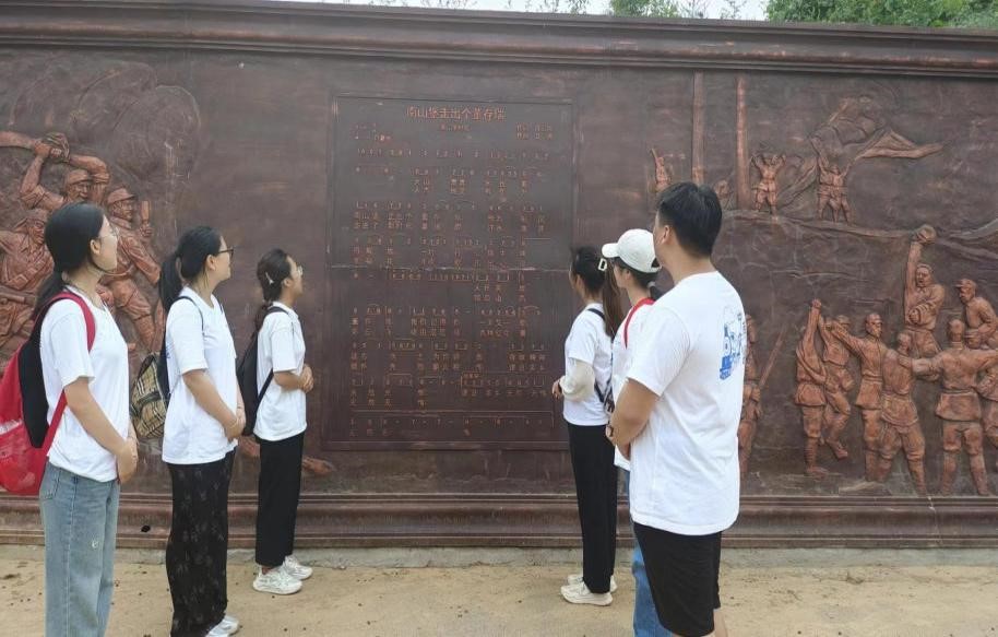 随后,实践团前往南山堡村史馆、怀来县董存瑞纪念馆进行了参观,工作人员对南山堡村村史发展和董存瑞英雄事迹进行了介绍。通过珍贵的图片、文物和详细的文字介绍,队员们深入了解了英雄董存瑞在解放战争中的英勇表现。工作人员生动讲述了董存瑞舍身炸碉堡的壮举,在场队员在深感震撼和敬佩的同时,也被董存瑞坚定的革命信念、无私的奉献精神以及不畏牺牲的英雄气概所深深打动。“为了新中国,前进!”,董存瑞这句生命绝唱,穿透时空在每一位国人心胸反复激荡回响。在互动环节,队员们纷纷表示,作为青年团员,一定要发挥先锋模范作用,学习“勇于担当,甘于奉献”的董存瑞精神,将个人的理想追求与强国建设、民族复兴伟业紧密结合起来,在新时代、新征程勇担历史使命,甘于奉献作为。