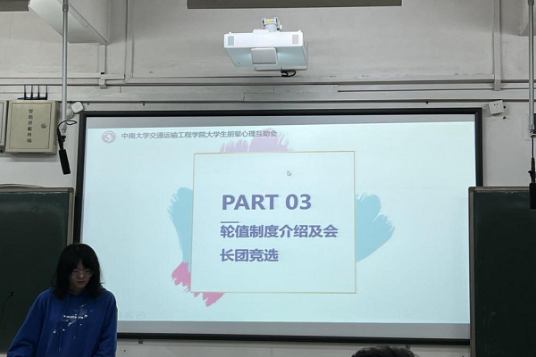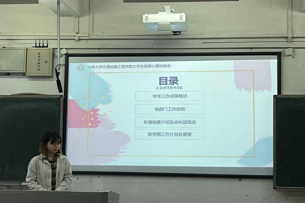 3月11日上午9点,交通院老员工朋辈心理互助会于A座103开展心助会新学期大会暨轮值部员竞选会,心助会全体成员参加。心助会副会长罗歆蕊主持会议。