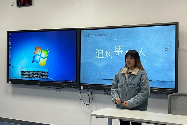 会议伊始,交运2101班文体委员李栗组织了你划我猜、起立抢答的暖场小游戏拉进联合班级同学距离。随后,交运2101班沈子力同学与交运2102班江百川同学先后分享了《追风筝的人》《平凡的世界》两部经典书籍。两位同学从作者与写作背景出发,分享了各自在阅读过程中的感受,引发同学们的思考。其中沈子力同学介绍了“风筝”这一词在书中的隐喻意义,其暗示主人公在历经各种挫折后,凭借自身的不懈努力与内心的坦诚,最终获得成长的过程。江百川同学谈到《平凡的世界》就如其书名,讲述的是平凡人的生活,人生可能就是如此猝不及防,但要努力“在认清生活的本质后,仍然热爱生活”。
