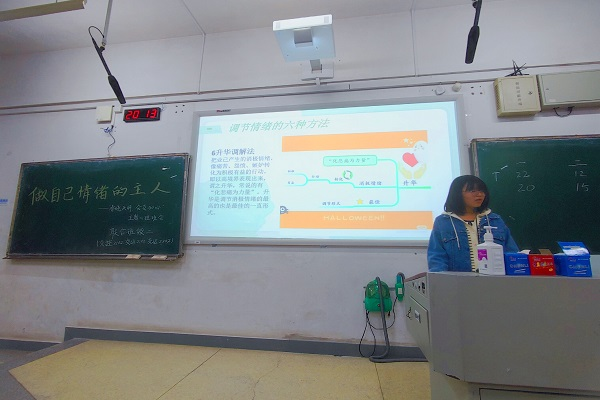 游戏过后,交运2202班心理委员张金玉讲解了管理情绪的五个步骤,介绍了六种简单的情绪调节方法,并带领同学们观看相关视频。她激励同学们保持情绪的稳定,做自己情绪的主人。最后,主题心理班会在欢快的情绪接龙游戏中结束。