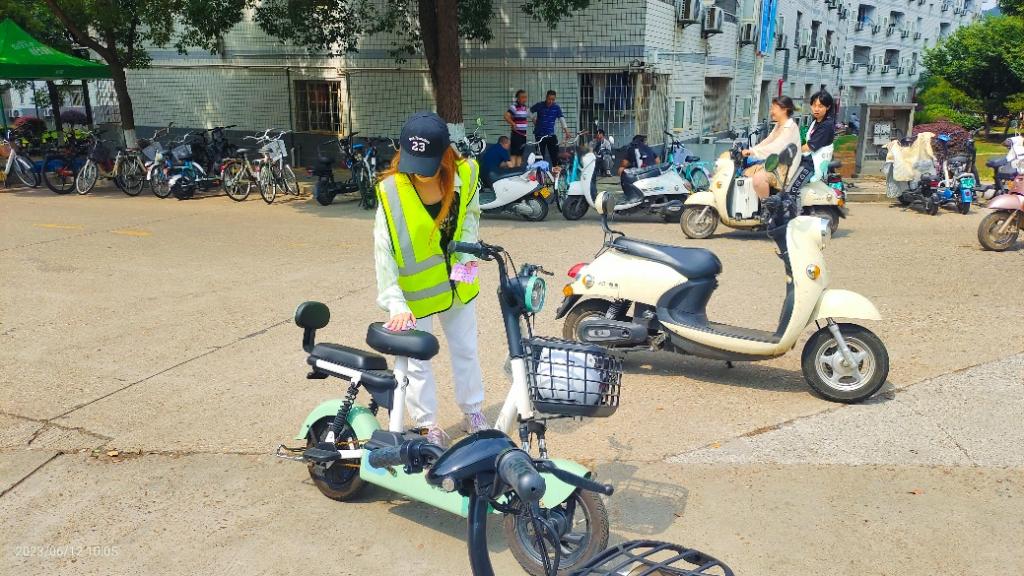 早上9:30-10:30,陈怡榕、杨启帆两位志愿者在升华公寓电动车停放点进行规范非机动车停放工作。为缓解上下课期间升华员工公寓非机动车停放点电动车、自行车的乱停乱放现象,营造良好的停车环境,两位志愿者在上下课时段提醒同学们规范停车。同时,他们对升华公寓的非机动车停放点进行了检查,将乱停乱放的车辆挪动到规定区域并摆放整齐,对于无法移动的电动车,贴上了“文明停车”的提醒标签。