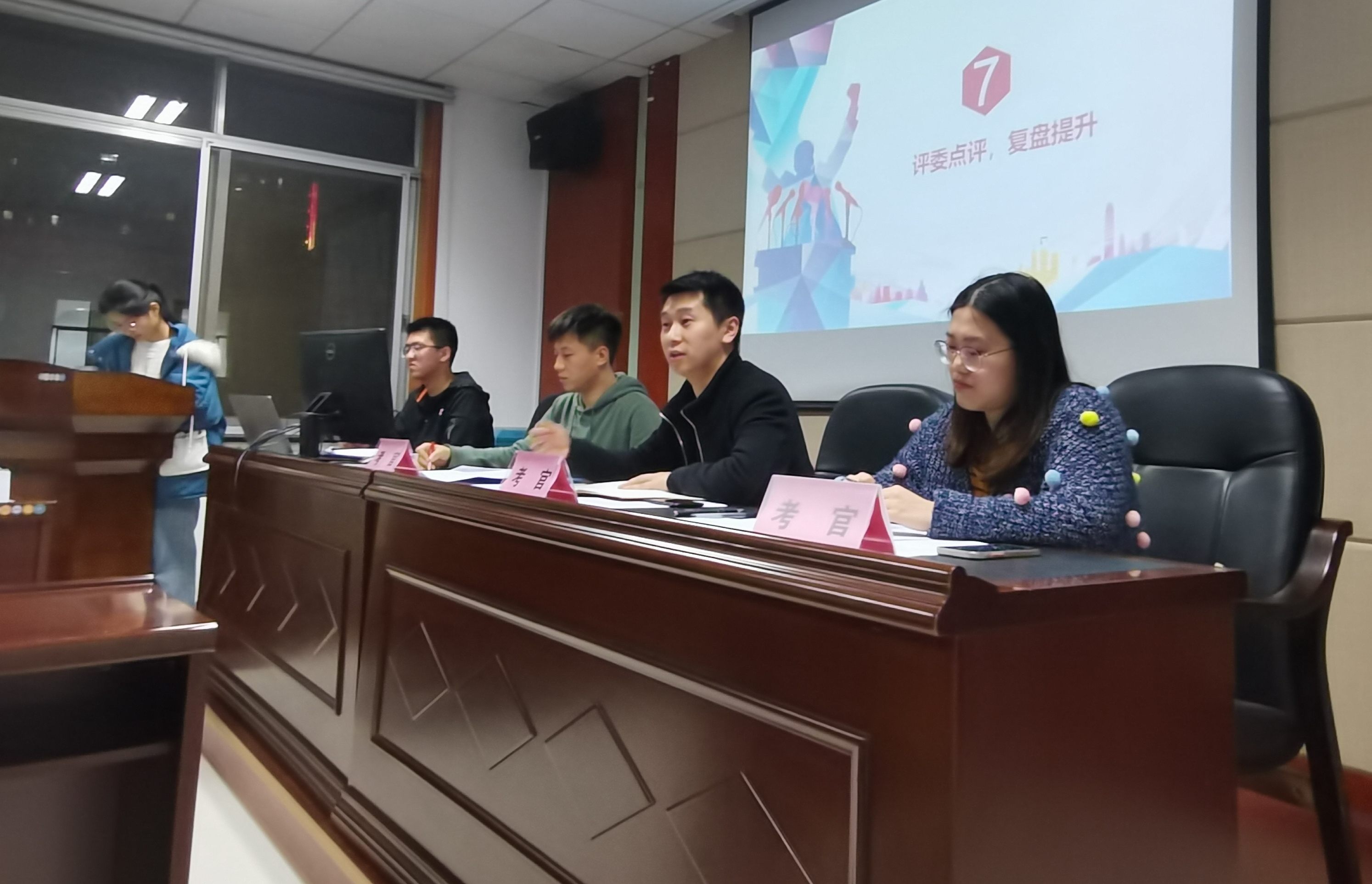 最后,由张老师和陈老师对比赛进行总结。张老师建议大家在参与过程中不要过度强调角色之分,而是应该站在团队的角度考虑为团队整体解决问题。陈老师建议大家在讨论中应当全程专注参与讨论,注意用客观事实来为自己的观点做补充。