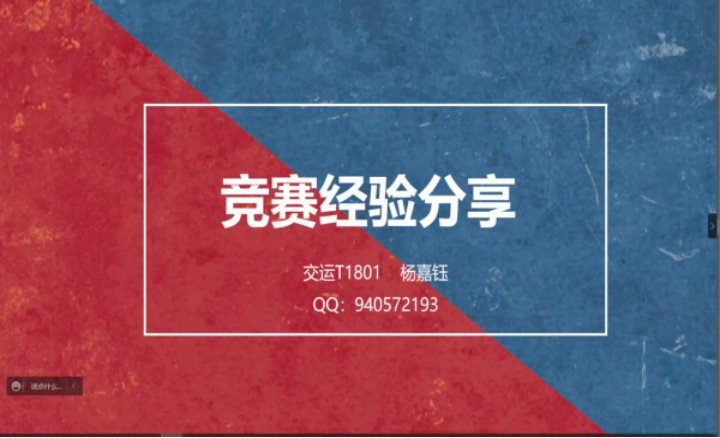 随后,杨嘉钰从自己的竞赛经验出发,分别从组队、选题、研究、参赛四个角度分享了她的竞赛体悟以及在竞赛过程中可能会遇见的问题与解决方案,并且根据大学不同时期的心智成熟程度向大家推荐了不同类型、不同级别的竞赛。“勇于尝试,坚持就是胜利!”杨嘉钰同学的一番话鼓舞人心,让同学们深刻地感受到准备竞赛过程中可能面临的挑战,以及参加竞赛带来的巨大成长。