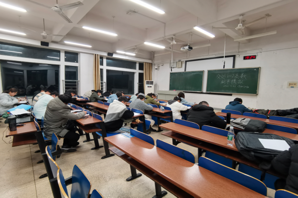 考试于19:00正式开始,全程按照正规考试标准进行,两人间相隔空座、禁止使用手机等电子设备、禁止翻阅课本等,为同学们模拟了真正的考试环境。考试期间,同学们高度集中,认真作答。
