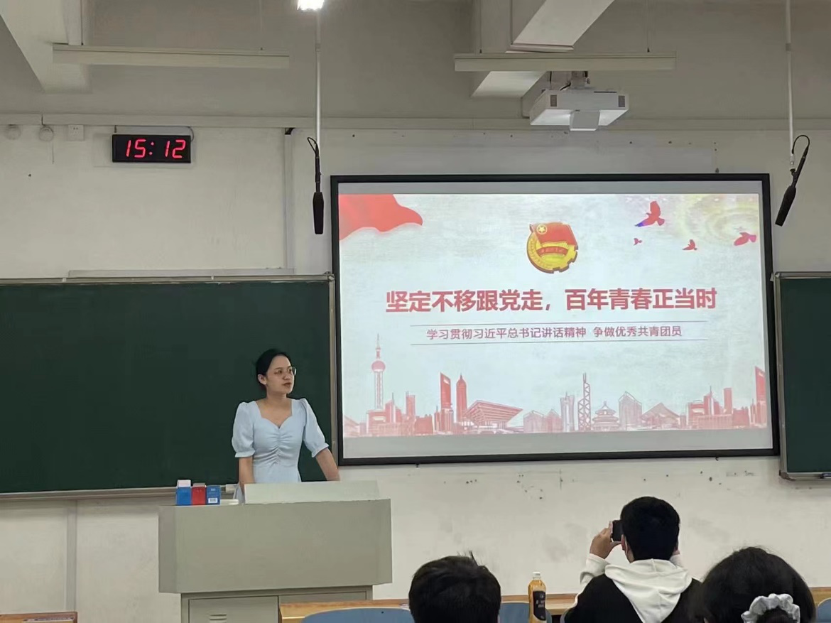 5月22日下午,三个团支部以“线下参与+线上直播”结合的方式共上一堂团课,本次团课邀请了外国语公司团委书记李雅丽老师作为主讲,李老师带领大家学习了《习近平总书记在庆祝中国共青团成立100周年大会上的重要讲话》,鼓励团员们争做新时代敢作敢为的优秀青年。此外,团员们还一同分享了优秀共青团员的光辉事迹,并重温了入团誓词。一声声铿锵有力的誓言表达了团员们作为中国特色社会主义建设者和接班人树立远大理想,不忘初心,接续奋斗的决心。