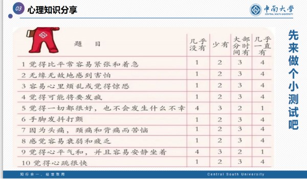 随后,主持人通过简单的心理知识测试了解了大家目前的身心健康状况,并在心理、生理两个方面进行分析,倡导大家规律作息,并且保持乐观的心态,与大家一起做到“停课不停学”,共度疫情难关。紧接着,主持人组织网络状况良好的同学进行了心理知识抢答活动,趣味十足,也深入了大家对相关知识的理解。