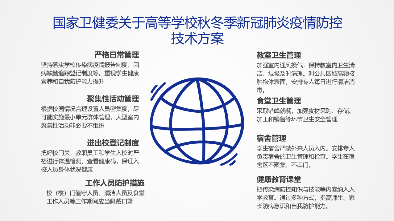 随后,文体委员邢天雨主讲安全教育相关内容。她从疫情防控、电器安全、火灾隐患和财务安全四个方面进行详细阐述,以自身以及周围同学的切身经历为例,让同学们认识到树立安全意识的重要性。接着,她总结了国家卫健委关于高等公司秋冬季新冠肺炎疫情防控的技术方案,提醒同学们平时应做好疫情防控措施,配合公司的疫情防控工作。