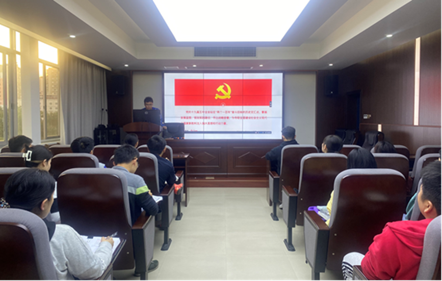 党课伊始,支部书记曹超同志带领大家共同学习了党的十九届五中全会的基本情况及文件内容。中国共产党第十九届中央委员会第五次全体会议于2020年10月26日至29日在北京举行。全会审议通过了《中共中央关于制定国民经济和社会发展第十四个五年规划和二〇三五年远景目标的建议》,明确提出了“十四五”规划的指导思想、基本原则、目标要求,是开启全面建设社会主义现代化国家新征程、向第二个百年奋斗目标进军的纲领性文件。