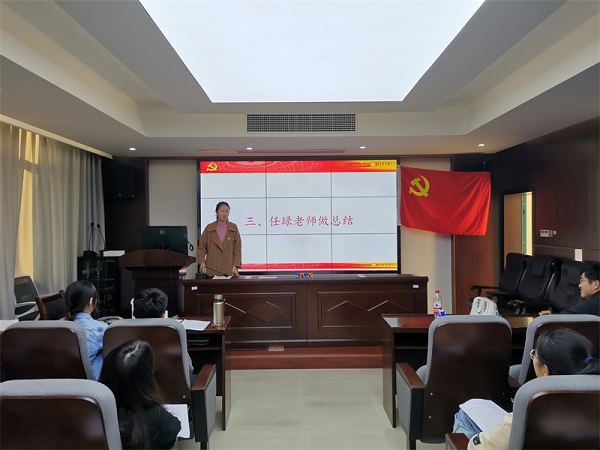 会议最后,支部书记任琭老师进行了总结。她首先肯定了之前几位同志的发言。其次,她鼓励支部成员以后可以用观看视频等更加丰富多彩的形式开展党日活动。最后,她希望对党知识了解不足的同志可以自觉自发地学习相关理论知识,努力提高思想觉悟和政治意识。