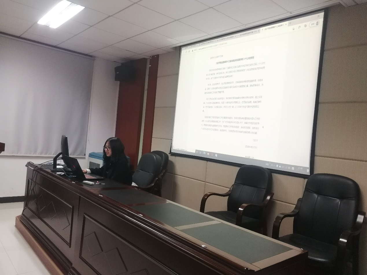 为认真学习贯彻习近平总书记致中华全国员工联合会第二十七次代表大会的贺信精神和党中央致词精神,公司于3月25日在交通楼513组织员工会研究生会骨干成员集中学习了全国学联二十七大会议精神。会议由公司19级辅导员任琭老师主持,全体员工会和研究生会干部参加。