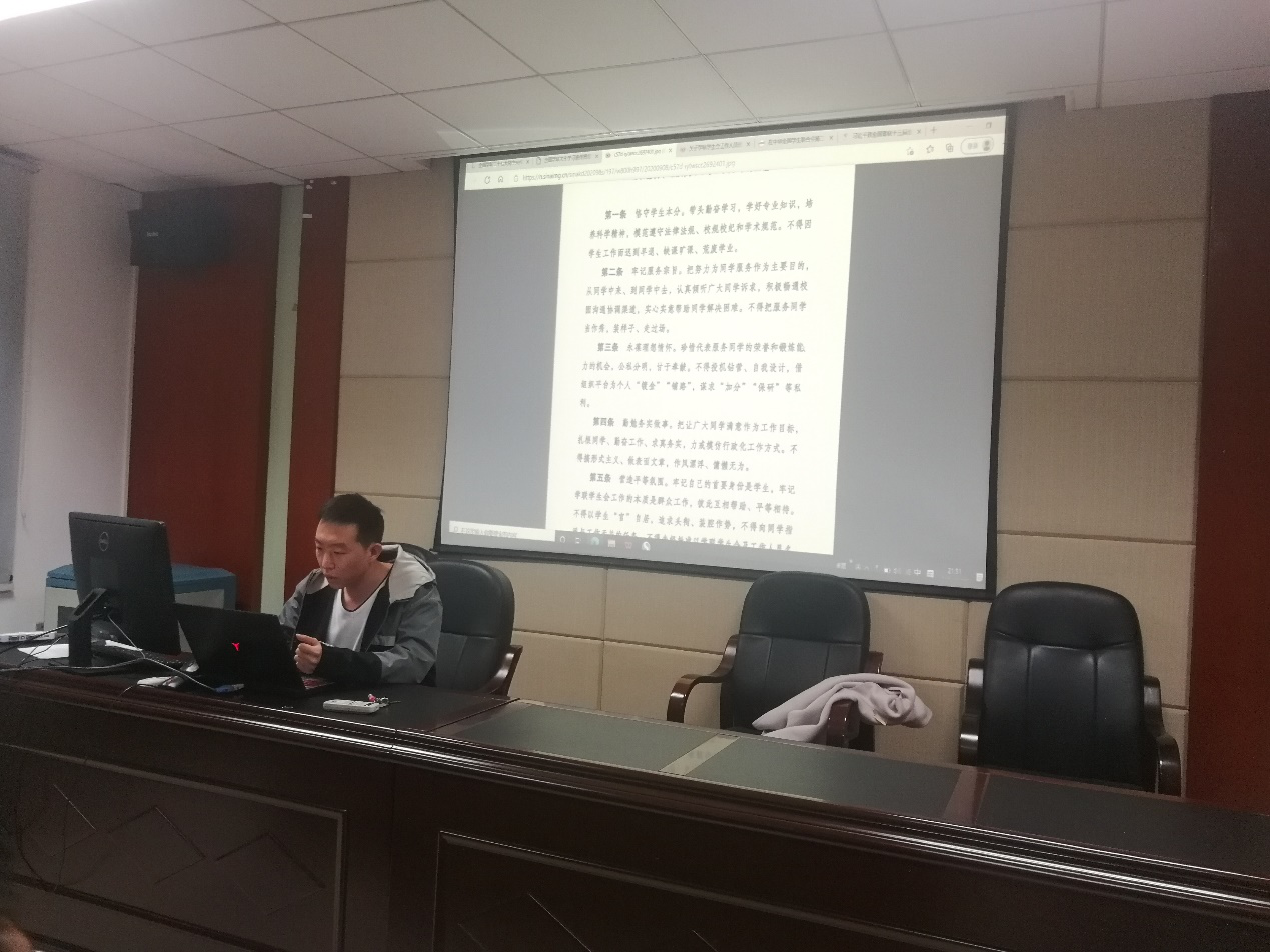 与会员工干部们认真研读文件内容,结合工作实际,纷纷畅谈了自己的心得体会。任老师强调,作为员工干部,应该坚定理想信念,树立正确的三观,积极团结同学,不搞形式主义,紧紧和同学们站在一起,切实服务广大同学,将员工会和研究生会发展成作风优良、团结紧密的优秀队伍。