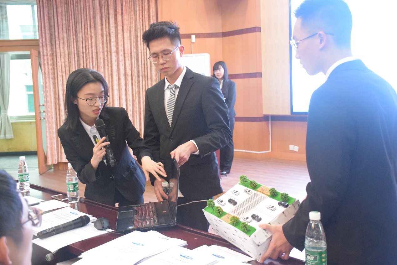 决赛由选手抽签决定答辩顺序,答辩分为作品陈述和评审提问两个部分,每组同学拥有十分钟展示时间以及两分钟作答时间。选手们以最饱满的精神状态站上展台,向评委及观众展示了他们准备已久的作品。这些作品涉及铁路运输,城市公交、车站基础设施建设等多个方面,是选手们灵感与实践的结合,既实用又不乏新意。通过展示,评委和观众们得以了解了产品的实用性、创新性、以及产品投入生产后的诸多益处。