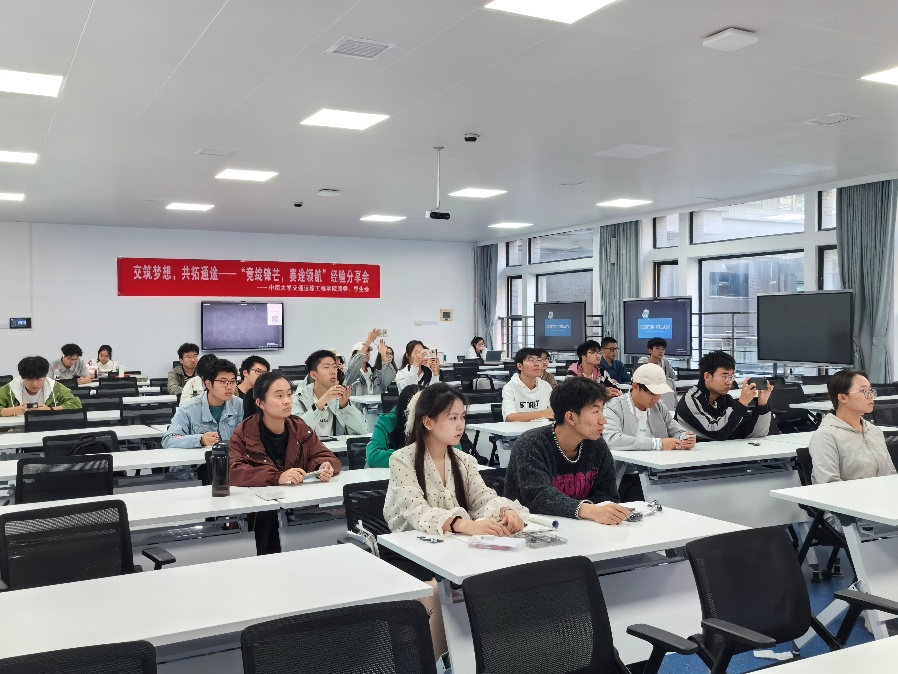 11月15日下午,bv伟德国际1946“交筑梦想,共拓通途”系列活动“竞绽锋芒,赛途领航”经验分享会在潇湘校区开展。本次分享会邀请了23级的董丁伊、班雅琳、白晓媛,分别带来数学建模竞赛、大英赛、交科赛的经验分享。