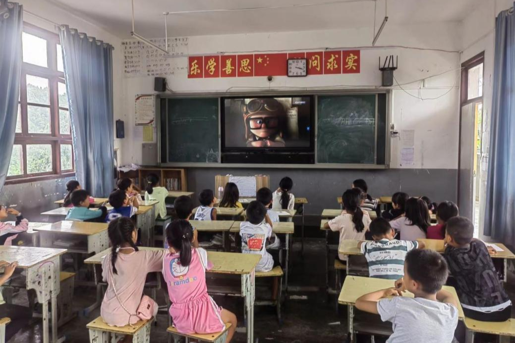 电影鉴赏课上,张梓萱老师与孩子们一同观看电影《飞屋环游记》,让孩子们懂得要勇于追梦、勇于探索,即使遇到困难,也要坚持不懈。电影向孩子们传递积极的情感,也让孩子们从中收获精神力量。