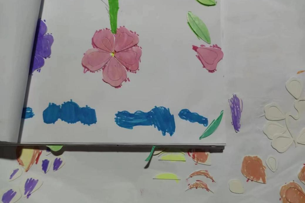 美术课上,陈静彤老师讲述基础绘画和色彩搭配技巧,魏嘉欣老师利用回收材料与自然材料进行艺术创作,带领孩子们进行贴画制作。绘画裁剪过程激发了孩子们的想象力与创造力,帮助孩子们通过绘画表现丰富的内心世界。