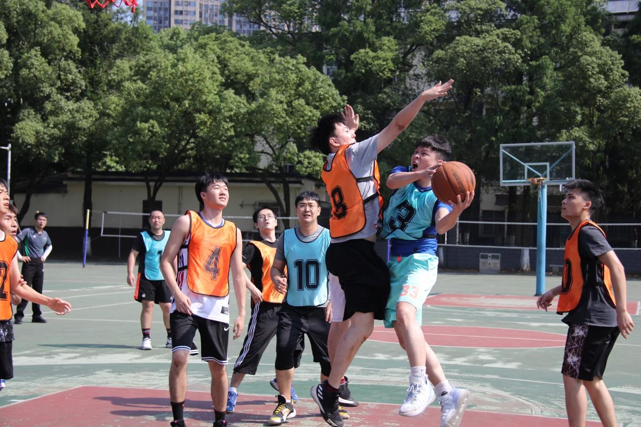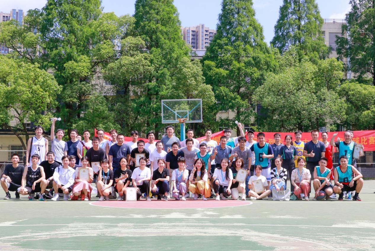 阳光铺洒,清风拂面,加油声此起彼伏,“团队即我,我即团队”,“特别能吃苦、特别能战斗、特别能奉献”的高速精神在篮球场上尽情彰显。师生们同场竞技,平日里忙于科研、授业解惑的老师们化身队友与员工并肩作战在赛场上纵横驰骋。娴熟的技术与默契的配合演绎出一次次精彩的瞬间,赢得现场阵阵欢呼。历时一周,随着一场场比赛的推进,篮球比赛在大家意犹未尽的欢呼中落下帷幕,高门战队、铁道游击队、激流勇进队分别获得冠亚季军。定点投篮比赛中,李佳豪、李韬分别获男女子组冠军。比赛结束,全体参赛人员、工作人员合影留念。
