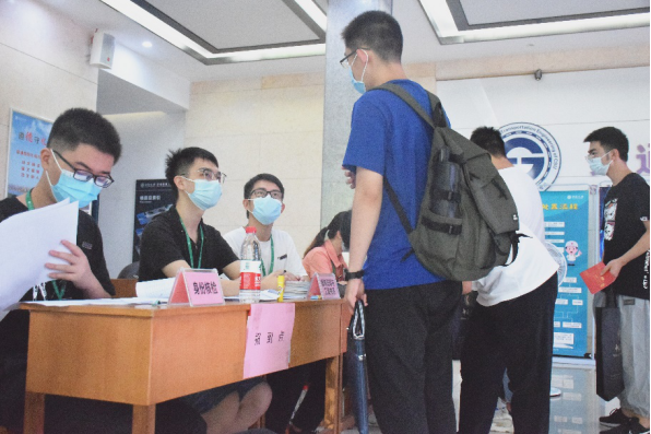 为有效缓解疫情防控压力,铁道公司西大门处设有测温区、健康查验区和扫码报到区,新生在完成健康码、行程卡等疫情防控信息核验后,扫码进行线上报到登记。在放置好行李物品后,新生同学们前往交通楼大厅报到点处完成现场报到。报到流程的简明化、规范化,为此次研究生新生入学工作安全、有序、高效进行提供了保障。