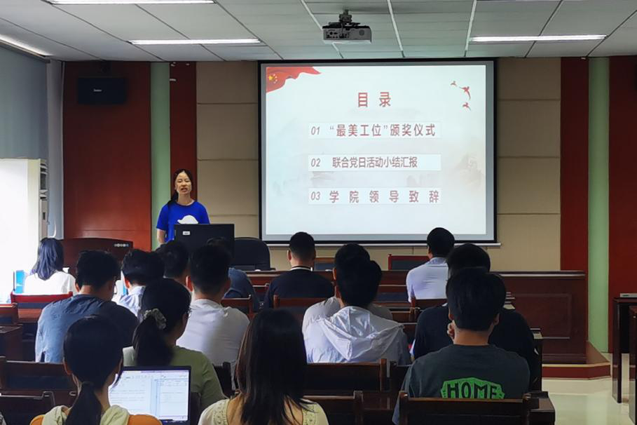 随后,樊佳俊同志对本次党日活动进行了小结汇报。本次系列活动共分为五个阶段。第一阶段活动为活动启动仪式暨链路经验分享会,活动邀请到优秀的老师、高年级硕-博士代表进行经验分享。第二阶段活动为实验室卫生打扫,党员同志们对自己所工作的实验室环境进行全方面打扫,做好表率作用。第三阶段活动为“最美工位”评选。活动经过线上公开投票,评选出了本次“最美工位”活动的获奖者。第四阶段活动为“劳动最光荣”交通楼卫生打扫志愿服务。在这场师生联手的大扫除活动中,有超过50名师生共同参与,所有人组织严明、分工明确,高效地完成了工作。
