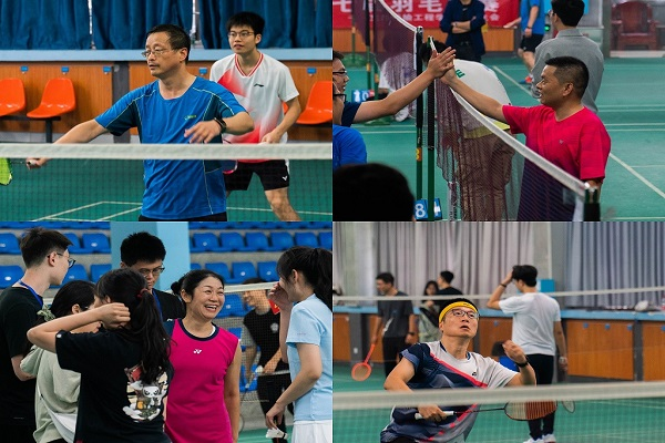 23日上午的比赛为师生交流赛,包括男双、女双、混双三项,老师们也热情澎湃地参与其中,由老师和员工组成师生联合队,各队都以饱满的激情投入到比赛中,呈现了一场场精彩的较量。冯芬玲老师还在现场教授同学们技术要领,各队伍在休息时也积极分析上盘得失,讨论战术策略。经过一番激烈的比拼,胡心磊老师和海洋同学获得男双冠军,林鹏秀同学和张璐同学获得女双冠军,冯芬玲老师和欧宇恒同学获得混双冠军。