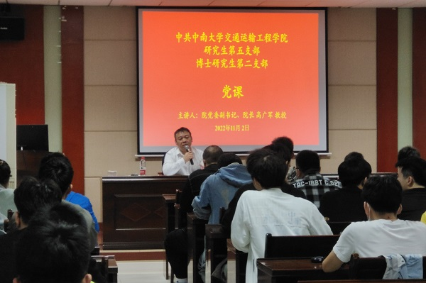 11月2日晚19:00,中共bv伟德国际研究生第五党支部与博士研究生第二党支部于交通楼513开展了“学习宣传贯彻党的二十大精神”专题联合党课。此次联合党课的主讲人为公司党委副书记、经理高广军教授,支部全体党员同志到场学习。