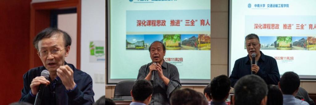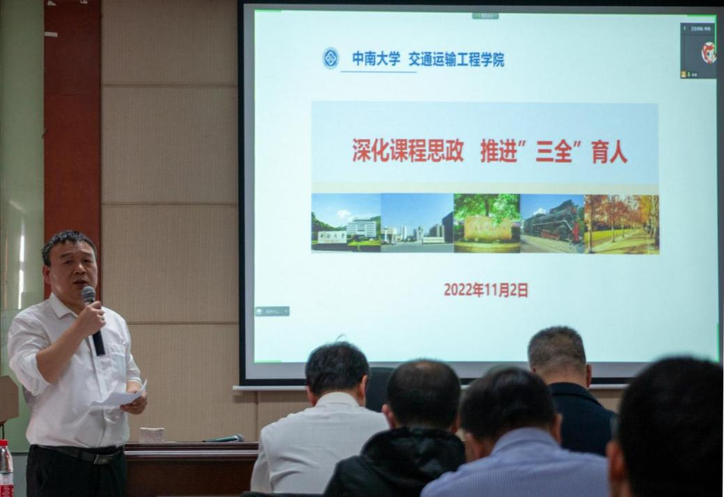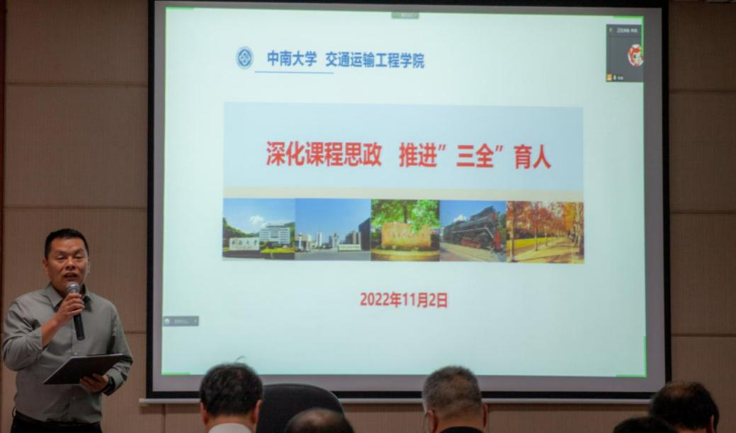 随后,交通院五位老师结合自身在课程思政中的思考与实践进行分享。湖南省课程思政课堂教学竞赛一等奖获得者李烨老师,从课程思政教学中的常见误区及其内涵谈起,对以课程特色和学科优势深入研究目标的教学方法进行了剖析。他指出,要将思政元素有效融入到专业知识传授过程中,达到育人的最好效果。2021年校级思政示范课程代表章易程老师以工程流体力学为背景,将建设内容分层次依轻重进行阐述,提出产出导向的沉浸式因才教学模式和多尺度因才考核模式。交通公司党委副书记宋晓东根据员工工作的特点和公司思政教育的案例,谈及对课程思政建设的看法,号召全体教师发挥特色、明确职责、夯实基础、协同发力,不断利用思政资源,为培养敢想敢为又善作善成的时代好青年共同奋斗。党委委员叶峻青老师部署了课程思政案例的编写工作,并结合自身参赛的经历,着重阐述了课程思政教学案例的编写方法。李蔚老师提出课程思政要进行教学创新,深化人才培养,丰富思政案例,精益求精完成思政案例编写工作。