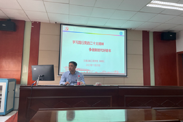 为深入学习贯彻党的二十大精神,11月20日下午15:00,公司党委副书记宋晓东于交通楼513为研究生第二党支部、研究生第三党支部、交通运输第二员工党支部全体党员讲授“学习践行党的二十大精神,争做新时代好青年”专题学习党课。三个支部全体党员参加本次党课学习。