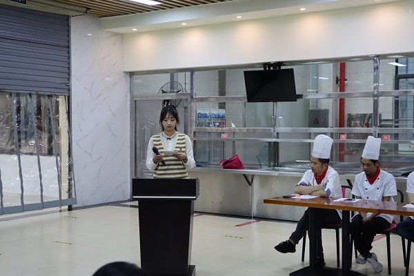 “结对子”环节结束后,饮食服务中心行政总厨甘罗成为所有参赛队伍介绍赛事流程、参赛选手须知、竞赛办法以及有关细则,强调参赛者须格外关注的要点内容,期待各参赛队伍在比赛中都能有精彩的创意。在随后的问答环节中,各参赛队伍就食材准备、视频拍摄以及评奖方法等方面提出了自己的疑问,指导老师们针对提出的问题进行了耐心细致的解答。