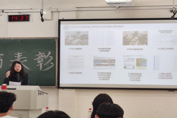 5月24日下午14:30,交通院老员工朋辈心理互助会在新校区A310教室举行“勤耕心田,稛载而归”总结表彰大会。交通院心助会指导老师、2021级辅导员王羽珊、交通院本科生及研究生各年级心理专干、各班心理委员以及心助会全体成员参加了此次大会。本次大会由王贵樱和吴奇轩同学主持。