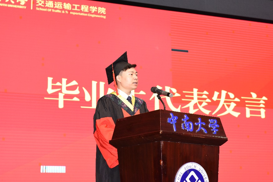 证书颁发完毕后,研究生毕业生代表李翔和本科毕业生代表王尚君同学发言。他们回忆了在中南老员工活学习的点滴经历,回忆了自己为梦想和未来奋斗的青葱岁月,表达了对公司公司和各位领导老师们的感谢、对未来的憧憬和信心,同时祝福母校蓬勃发展、再创辉煌,鼓励各位同学自觉肩负实现中华民族伟大复兴的历史使命,奔赴更为灿烂的明天。