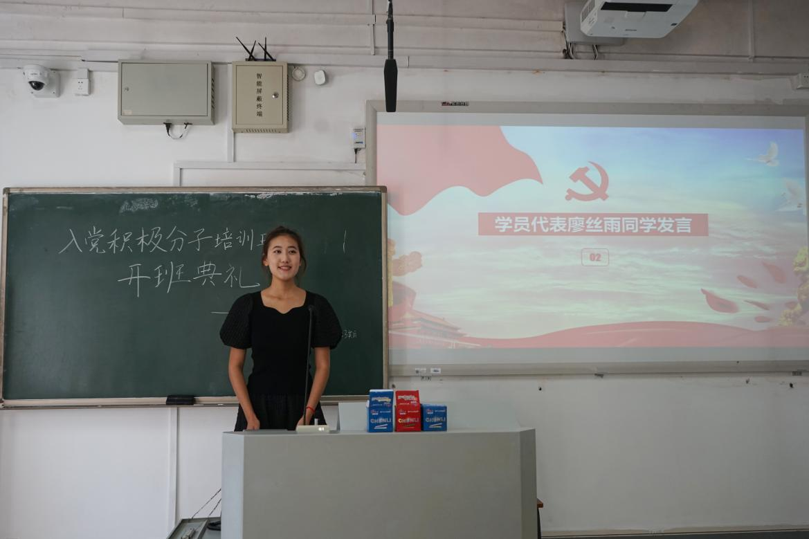 典礼伊始,全体成员起立,奏唱国歌。随后,本期培训班学员代表廖丝雨同学发言。她代表全体学员感谢党组织提供系统学习党史理论的机会,带领同学们一同回顾了党的伟大奋斗历程,鼓励同学们学习先进共产党员的优秀品质和理想信念。最后,她号召同学们端正学习态度,高质量完成党课学习,积极参加党课活动,不负党的希望,不负人民的信仰。